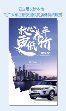 知车宝是湖南优车生活网络科技有限公司开发的一款“互联网+汽车服务”APP,致力于打造中国专业的汽车服务B2C平台。知车宝通过不断整合上游资源,优化线下专业化服务能力,全力为车主提供众多透明、优质与更便宜的汽车服务产品。
