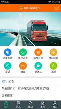 中原物流通分为货主版和车主版,目前货主版只提供“发布货源”功能。而车主版除了发布功能,还带有“一键找货”,“周边用户”等一系列功能