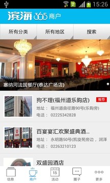 【本地商户】:这里搜罗了滨海各个行业的商家,是本地生活的大黄页,您可快捷的查找,一键拨号商家,方便您的订餐购物。