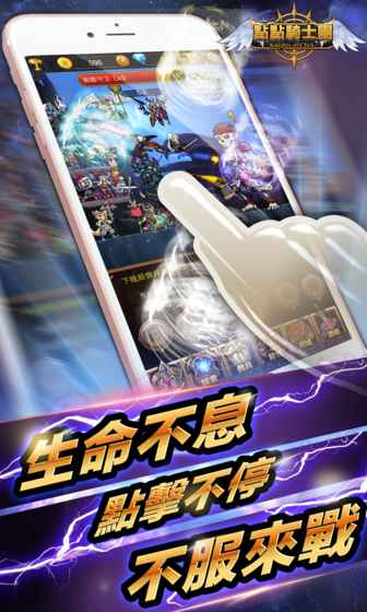 点点骑士团是一款休闲点击放置类手游,大批魔物来袭怎么办,快来点击消灭它们吧,点点骑士团让操作回归最原始的点击攻击,比比谁的手速快,击杀魔王,获取宝物,还有独创华丽技能可以使用,快来一起点杀魔物吧!