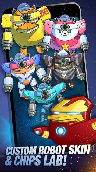 不断升级你的芯片,制作出更强力点机器人来打败他们!