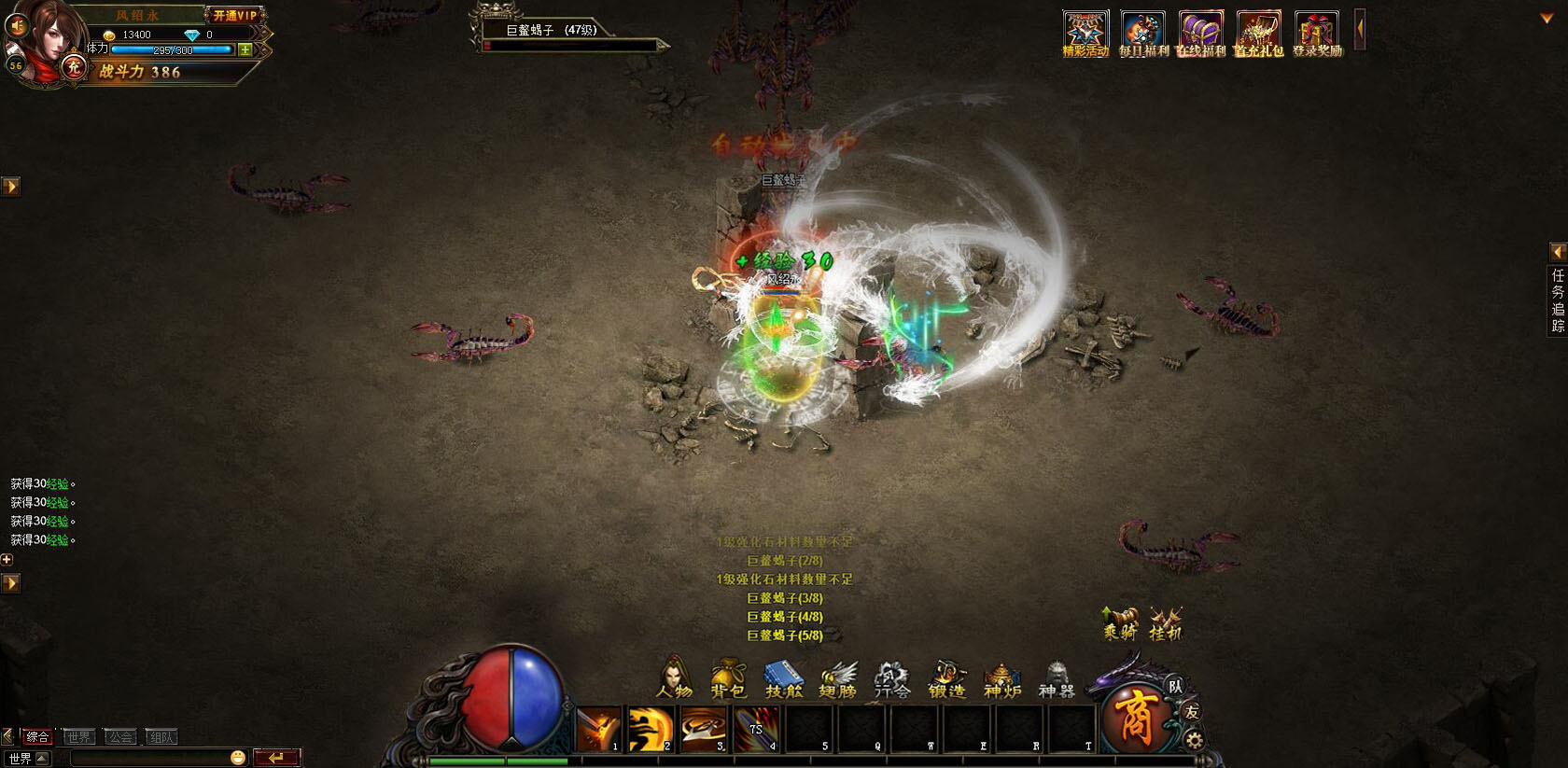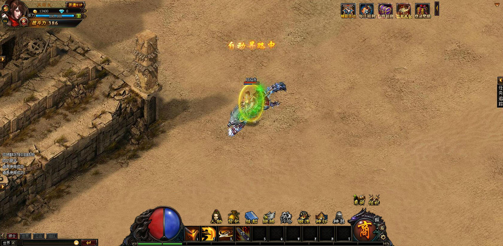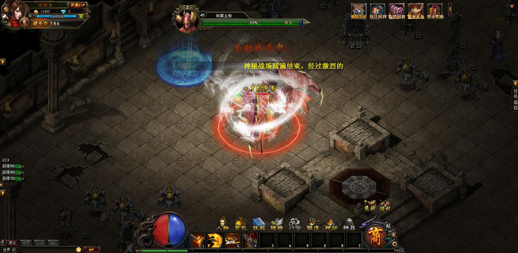 1、延续传奇核心玩法,经典设定,自由切换战斗模式;