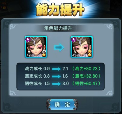 侠客升星后,战力、意志、悟性的成长数值会有所提升,星数越多,成长值越高哦~