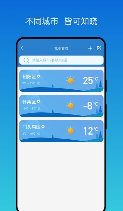 城市列表:各地实时天气任意添加,全球天气变化让你一览无余