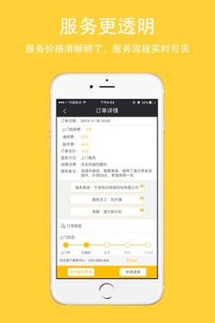 用户端-----宁波快点网络科技有限公司成立于2014年8月20日,立足“电器后市场”,创新O2O电器售后服务模式,开发电器售后服务APP——快点修。任何电器使用者,在电器使用中发生故障以及电器保养需求,通过“快点修APP”,实时发布需求,网点在线响应顾客需求,并通过平台文字、语音、图片、视频四种功能,与接单网点及师傅在线准确沟通产品故障信息,提高一次解决能力。平台充分保障用户权益,用户师傅响应速度大幅提升。