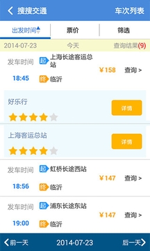 搜搜交通App是一款专门为用户设计快速查询汽车票的手机应用,汇聚了全国各大汽车票售票官网车次信息,是目前国内最全和最权威的车次信息查询应用,如需购票,可上搜搜交通官网 www.sosojt.com购买汽车票!
