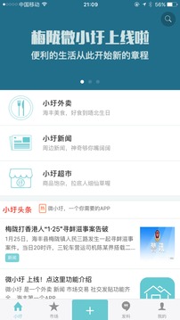 微小圩,一款专为海陆丰老百姓服务的生活APP,其中包含【小圩外卖】、【小圩新闻】、【小圩超市】、【货物买卖】、【招聘工作】、【楼房租售】、【我爱发料】7大板块,为海陆丰百姓提供优质的互联网服务。