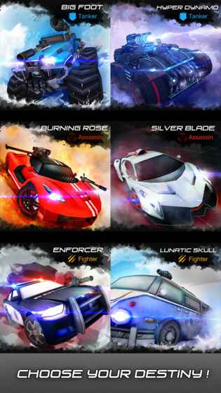 游戏中的战车和武器由传奇的跑车类游戏的感兴而创造出来,如旋转钢铁,死亡之旅,疯狂的麦克斯,暴力战车,Vigilante 8跑车,守望先锋,侠盗猎车等等
