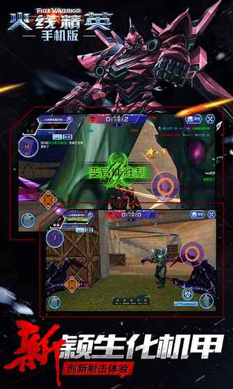 《火线精英》是一款FPS竞技射击手游,游戏采用便携的双摇杆操作,全3D视角,让玩家可以自由控制移动和射击,完美兼容手机与WIFI网络,实现4V4等多人对战。除爆破、生化等多种模式外,游戏与众不同的机甲模式,独有的科幻风格,让玩家可以变身为战力爆表的酷炫机甲,让你的敌人闻风丧胆!另外还有千种枪械、百张地图任你挑选,尽情发挥你的战斗狂热。