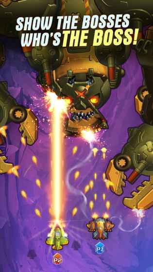 刺激的Boss战,超出手机显示屏大小的巨型Boss将对你进行疯狂攻击。Boss及小怪发射出的弹幕让你眼花缭乱,在子弹的间隙中扫荡所有的敌人!