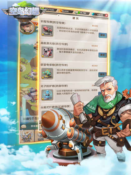 空岛幻想电脑版是一款空中策略战争游戏,游戏画面精美,刻画空中浮岛世界,空岛幻想电脑版中,玩家需要合理利用资源,发展自己的势力,用最有效的策略进攻其他浮岛,掠夺资源,并防御敌人的侵袭,成为空中霸主。