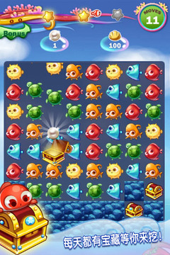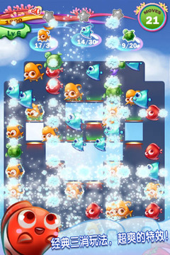 跟着提莫来一次疯狂的海底冒险吧,达成收集目标,保护自己的同伴,阻止一次又一次的鲨鱼和章鱼的攻击,捣毁人类的阴谋,防范毒鱼的侵蚀,去海底神殿一探究竟。除此之外,还有神秘的隐藏关卡等着你去探索。精美的画面,精心设计的关卡,萌萌可爱的小鱼们,等待你去发现。