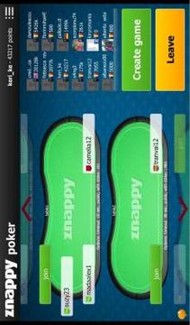 Znappy扑克是移动应用程序http://poker.doizece.ro/。易于访问,快速和免费的:玩家登录用户名和密码或登入你的Facebook帐户。进入游戏选择创建一个新表,或者可以加入现有的游说。