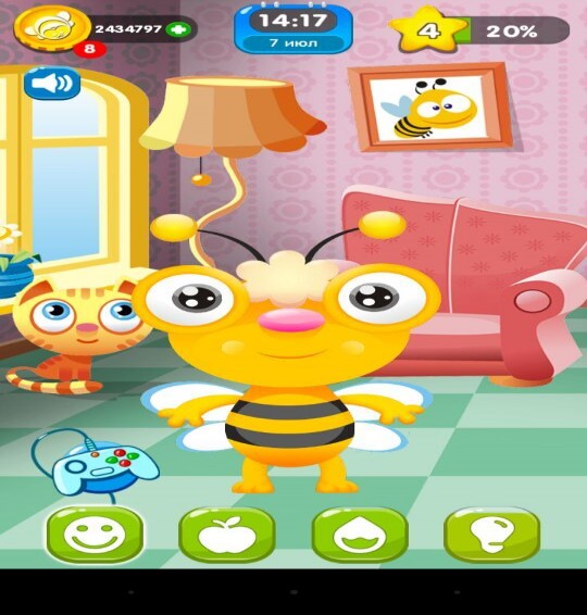 《蜜蜂小宠物 Bee Smarty》游戏中你需要时刻照顾它的饮食起居,当其满意度上升后,还可以升级解锁更多的项目。