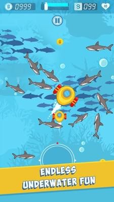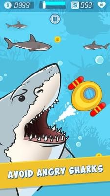 尽量去,但是别忘了环顾四周:避免愤怒的鲨鱼试图打你!你没有武器,所以生存的唯一方法就是更快地移动并使鲨鱼相互撞击。