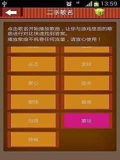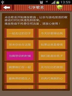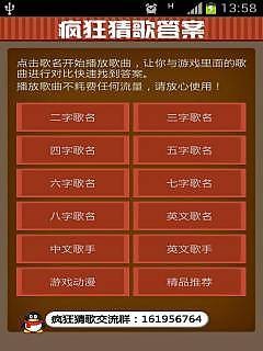 疯狂猜歌答案大全是解决你在玩疯狂猜歌时不用一个一个的找答案的麻烦!总之一切为了猜歌!加油!十分有趣好玩,可以和朋友一起互动的游戏,快来试试吧!
