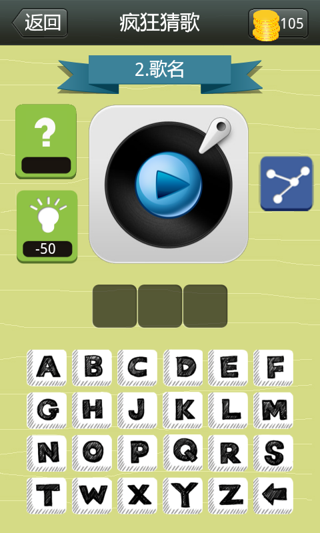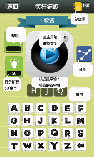 疯狂猜歌-玩命版:玩命版相对更加的难了,因为提示文字只有歌曲字的首字母。