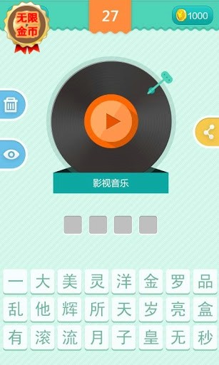 疯狂猜歌开心版修改无限金币版:游戏的玩法和界面基本上是和疯狂猜歌差不多,感觉还不错