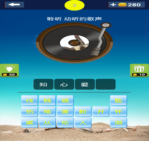 当一首首熟悉的歌曲想起的时候,你是否还记得那个TA?当熟悉的旋律奏响的时候,你是否还想的起歌曲的名字?考验你的时候,到了!闭上眼睛,用心聆听,然后选择正确的汉字,组成正确的歌曲名字!一起猜歌曲,就是那么的简单!当然,你还可以邀请上你的好友,你的小伙伴们,一起来比拼,看谁猜中的歌曲多!心动,不如行动,赶紧下载下来试玩吧!