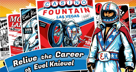 《埃维尔的特技摩托Evel Knievel》是由开发商Barnstorm Games推出一款向摩托特技运动之神埃维尔致敬的赛车游戏。游戏中,玩家将操控克尼维尔去各种疯狂的摩托特技表演。