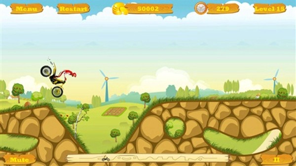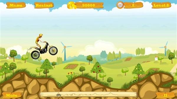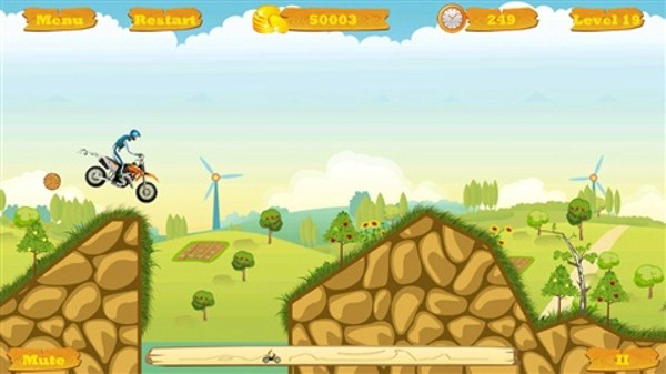 - 操作简单,按屏幕右边加速,左边减速,倾斜设备控制摩托车的翻转