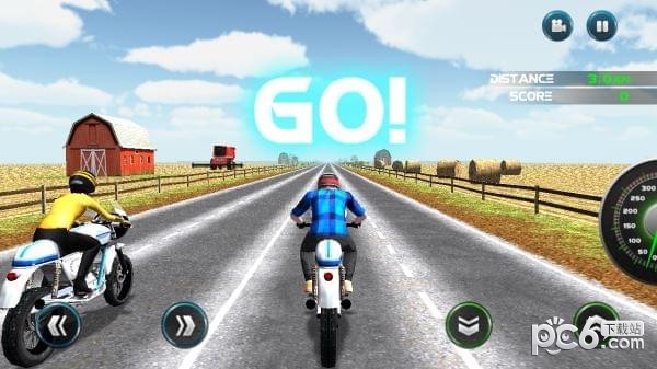 是一款摩托车竞速游戏,你将和另外一名摩托车手进行较量。一定要注意公路上面疾驰的警车还有客车哦!