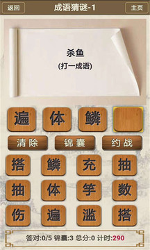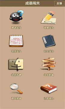 包括:成语猜谜、成语对联、成语消消看、看图猜成语等几个游戏模块。让人在游戏中体会国学精粹。