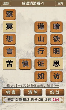是一款以成语知识为基础的休闲益智游戏学习软件。