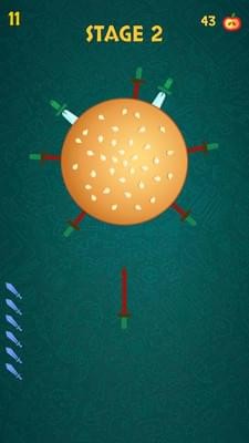 水果刀游戏你需要做的就是:在屏幕上单击一下,将刀向上射入旋转目标。