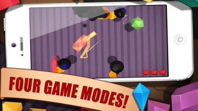 经典模式:经典模式中,会不断出现宝石和炸弹,时间无限。宝石共有三次因没有切到而失误的机会,而炸弹只要一切到游戏就会马上结束。