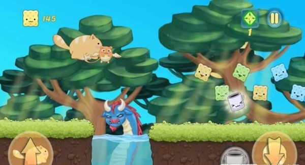 玩家在游戏中将要操控一只可爱的小肥猫在森林里奔跑,在森林中你将会碰到各种各样的陷阱、蘑菇怪、海怪,不断的规避这些东西并且搜集幸运饼干来兑换金币吧!