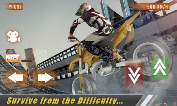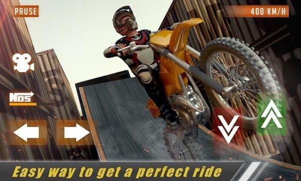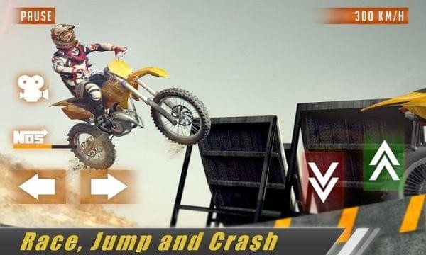 是一款摩托车题材的模拟驾驶类游戏。这款并不需要玩家多快的速度,速度只是一种用来完美完成特技动作的手段。游戏的操作很简单,左右控制方向,红绿分别控制加减速,这里有多个值得你来体验下的赛道,来挑战下吧。