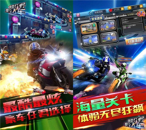 《》是一款赛车竞速类游戏,但不仅仅是一款竞速游戏,还融入了格斗玩法,形成了新式的格斗竞速游戏。游戏中有生存模式,竞速模式,障碍模式供玩家自由选择,还有大量的炫酷摩托,拉风武器供玩家自由使用,让玩家获得速度与战斗的酷爽体验。