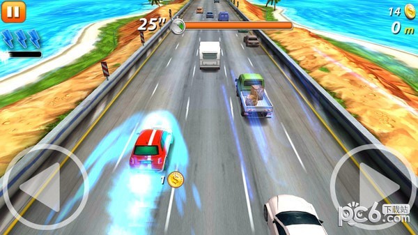 2、和众多对手一起争相竞速,获得比赛的第一名,可以得到大量的奖励,用来购买升级车辆。
