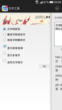 "汉字工具"帮助你轻松实现汉字转拼音,以及繁体和简体字互换, 帮助你学习中文。