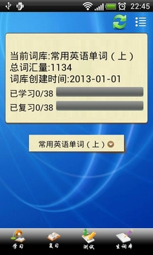常用单词随身记,包含常用单词3000多个,以列表的形式展现,共100多个列表。该软件采用智能复现计划,第一次学习完成后,运用了艾宾浩斯记忆曲线的原理帮助进行复习。按照复习计划,使记单词不是难事。大大提高单词记忆效率。软件支持将还未掌握的单词归入生词本,支持学习之后进行测试。