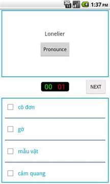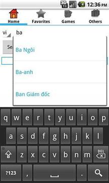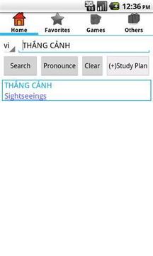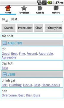 这是一个非常简单和容易的越南的词典。您可以搜索英语和越南话。要搜索越南的话,你必须已经安装任何越南的键盘。这不仅是一个字典,但也是一个学习工具。您可以使用这本词典时,你有没有互联网连接。多项选择题(多项选择题)可供选择。有自动建议,因此您不必输入完整的单词。您还可以使用语音到文本功能。您可以添加单词学习计划。 ,你也可以删除单词学习计划。您可以打开/关闭自动搜索设置的应用程序。所以低调移动手机可以关闭自动搜索的快速输入。通知栏快速启动应用程序,你会看到词典图标。