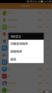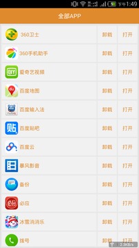管理APP 是一款 快捷显示出安卓的所有App程序,并对每个程序对应操作 例如 卸载程序 打开程序。管理APP 后期将进行扩展功能。