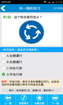 驾校宝典科目一是一款专业的驾校模拟考试软件,更新至2016科一理论题库(1229题)。