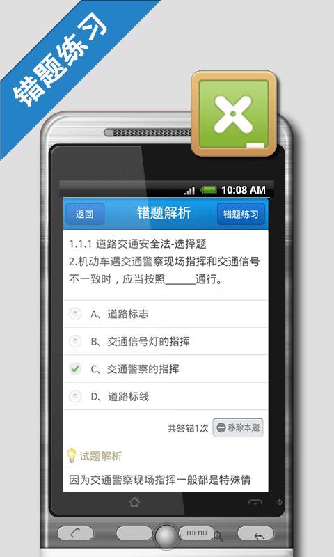 *不知道错哪了?别怕,系统会自动记录您在交规章节练习和模拟考试模块下的答题情况,所有错题都会被单独提炼出来,强化记忆。