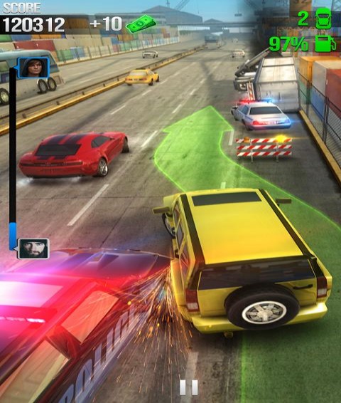 是一款3D竞速类赛车玩法手游,你是一位在车流中横冲直撞一路狂奔的司机,穿过密集的车流,随时停车加油,躲避警察设立的障碍物!逮住捉摸不定的运钞车则可以让你赚的盆满钵满!