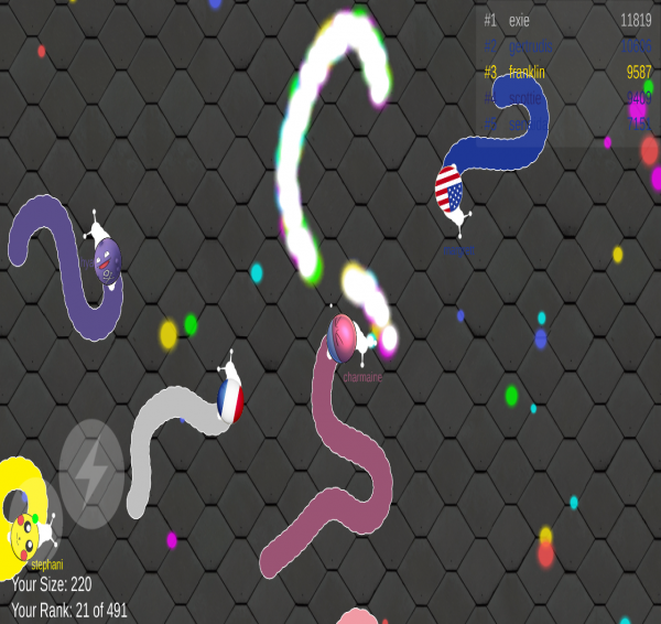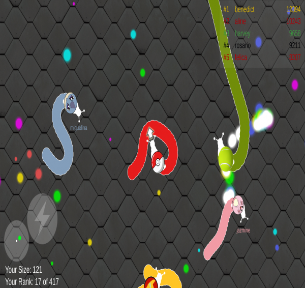 你是蜗牛.IO蜗牛。你需要吞下尽可能多的小圆点闪烁尽可能。如果你的头碰到另一蜗牛,你会死。但是,如果别人这样或那样的死去,就可以吃了他们的遗体。