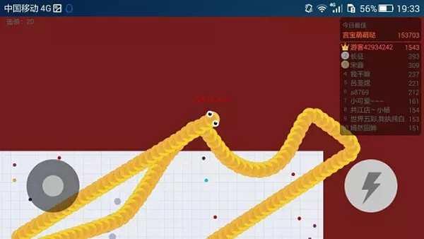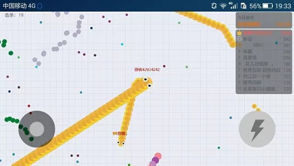 3.长按加速键,用巧妙的走位让蛇身被别人撞上,就可以吃掉尸体迅速变长。