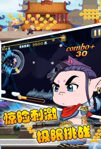 天天跑酷2016真实还原西游记经典剧情,将跑酷游戏与西游八十一难完美融合,给你带来不一样的天天酷跑体验!游戏中,你将扮演孙悟空、猪八戒、沙和尚中的一位,通过跑酷的方式,解锁关卡,历经磨难,最终到达西天圣地。