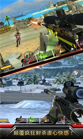 致命枪杀Kill Shot内购版是一款以国际反恐为游戏题材的3D高清FPS枪战手游大作。游戏中玩家将扮演联合国维和部队的高级狙击手,为了维护世界和平稳定你必须迈入战场前线,与敌人决一死战。还有单机模式让玩家轻松娱乐。