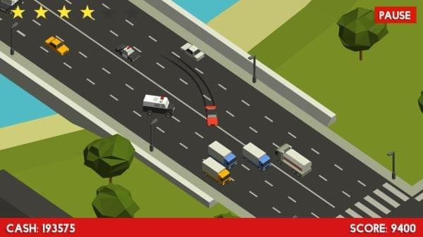 是一款赛车竞速游戏。这款中,玩家扮演的是一位被警车纠缠的驾驶员,为了摆脱警察们,玩家必须驾驶着车辆在这个世界中利用障碍物错位加速才行。游戏中的得分是看你的星数和摆脱速度来看的,被抓到后的话分会很低。