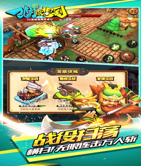 副本挑战:副本章节以三国时期知名战役为背景,每个章节都是一个三国经典故事,从小关卡开始挑战直到最终关卡BOSS,融入众多无厘头搞笑元素;