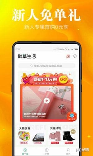 首次使用种草生活的新用户可参与0元购活动,免费购买任一活动商品!(首单支付多少就返多少)