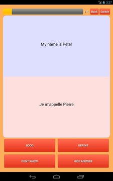 Each Deck of words contains two methods of learning. Walking mode is great when you can't always look at the phone screen. Use your earphones to listen to the words being spoken. The buttons on screen can be easily pressed without looking at the screen.