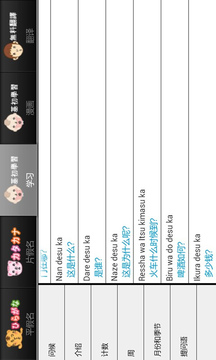 《轻松学日语》这款应用里面包含了平假名、片假名的字符表。平假名、片假名是日语的基本的拼音字母。这款应用里面,提供真人发音教学,你可以边听边模仿学习。你还可以根据字符表,练习写日本字。此外,提供了一部分常用的问候语,介绍语,以及周和月份的写法。